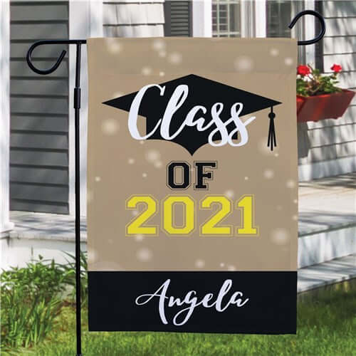 Honor your Graduate by decorating the front of your home with a Personalized Congratulations Class of Garden Flag. A Great way to show off your Graduates accomplishments to family & friends. It's sure to welcome all to the Graduation party. You can Personalize this flag with any name and year of your choice. Makes for a fun and ideal graduation gift.
