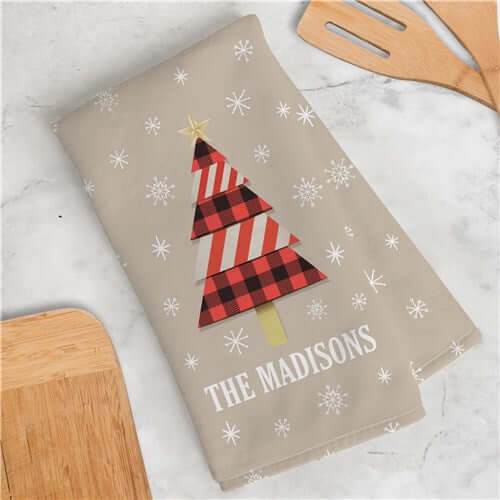 What better way to add Christmas cheer to your kitchen than with our Personalized Christmas Tree Kitchen Dish Towel.