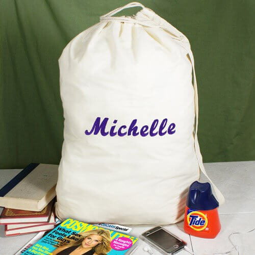 Your graduate deserves a great, reliable and easily recognizable laundry bag, especially on their crowded college campus. This embroidered laundry bag includes free personalization. We will embroider this laundry bag with any name in script or block in any thread color. Natural cotton laundry bag measures 19" x 27" with drawstring closure and web shoulder strap; machine washable.