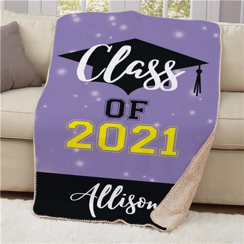 Create your own Personalized Graduation Sherpa Throw as a special graduation gift for your grad. We will custom personalize withany year, any name, andany design color choicesto make a beautiful school or university keepsake.