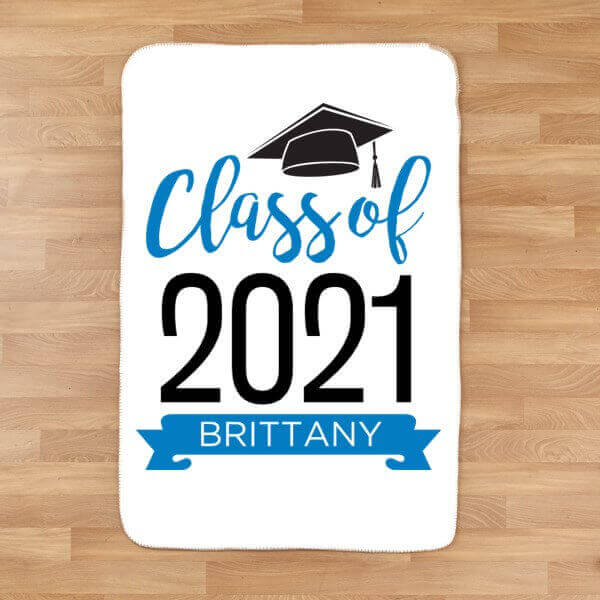 Give your graduate a blanket they can be proud of with this Personalized Graduate Hat With Banner Sherpa Blanket. Our soft Sherpa Blanket may be personalized with your choice of design color, the year, and any name. Makes a great gift for any high school or college graduate!
