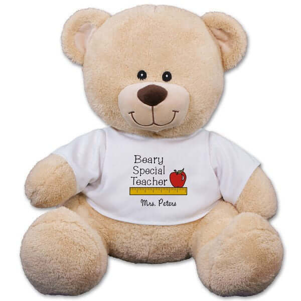 Lovable and soft light brown teddy bear features sewn eyes and durable construction. This is the perfect gift for your teacher to show them how much you adore them!