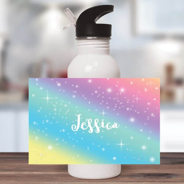 This Personalized Rainbow Water Bottle is the perfect accessory for your little girl to use all day long.