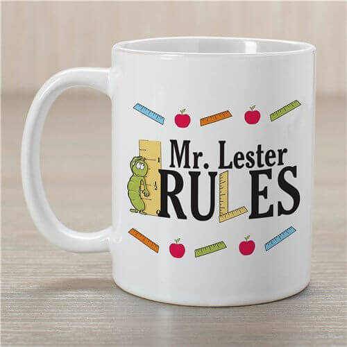 If you think your teacher rules, then this is the perfect personalized gift for him or her. Let your favorite teacher know how much the rule with this personalized mug. Our custom ceramic mug features a teacher specific design and can hold up to 11 ounces. Personalize for free to make for a unique teacher appreciation gift. Personalize this "My Teacher Rules" Coffee Mug with any custom message of your choice. He or she will appreciate this thoughtful gift.