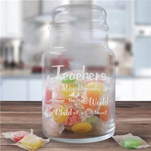 What a better way to show your teacher you are thankful for all they've done. This personalized treat jar will last a lifetime and will show all of your teacher's students how special they are for many years to come.