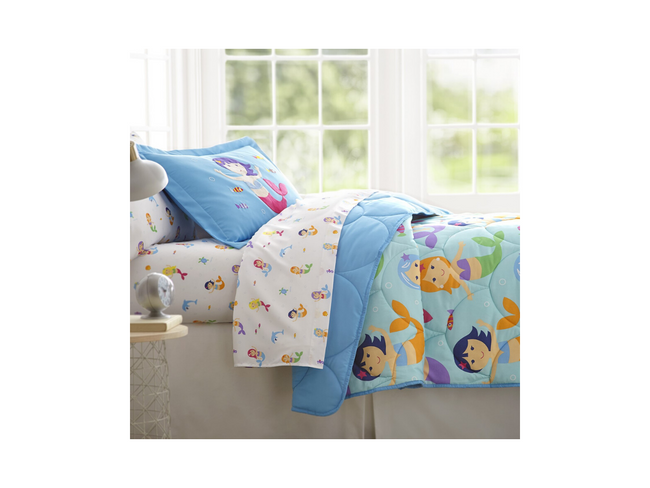 Made from extra soft microfiber fabrics, this 5 piece set by Olive Kids includes a printed comforter, flat top sheet, fitted bottom sheet, printed pillowcase, and an embroidered sham. Designed to fit a standard, twin-size mattress.