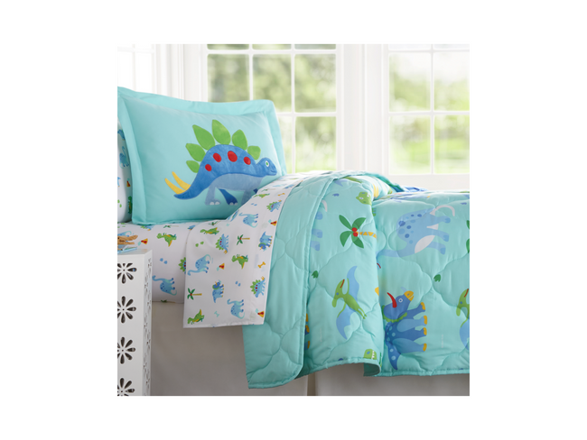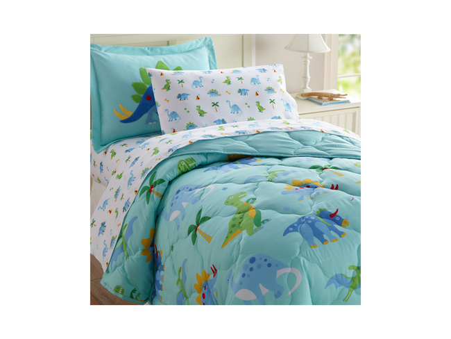 Made from extra soft microfiber fabrics, this 7 piece set by Olive Kids includes a printed comforter, flat top sheet, fitted bottom sheet, two printed pillowcases, and two embroidered shams. Designed to fit a standard, full-size mattress.