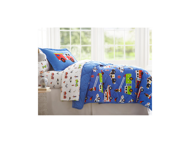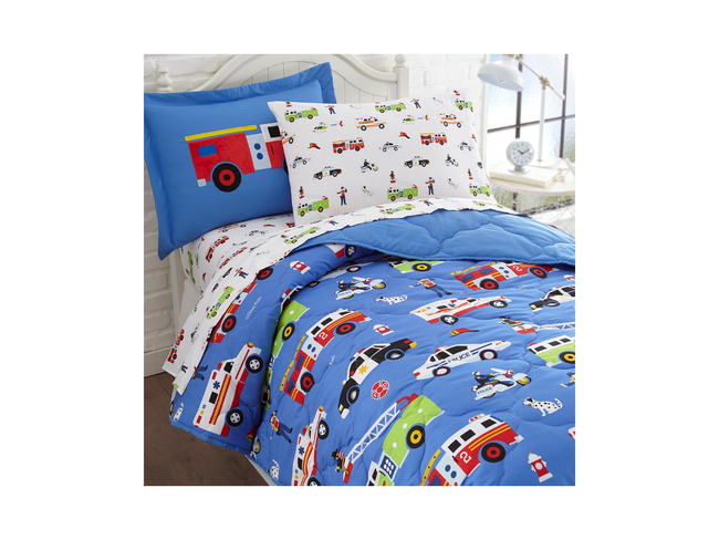 Made from extra soft microfiber fabrics, this 7 piece set by Olive Kids includes a printed comforter, flat top sheet, fitted bottom sheet, two printed pillowcases, and two embroidered shams. Designed to fit a standard, full-size mattress.