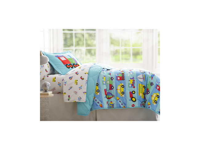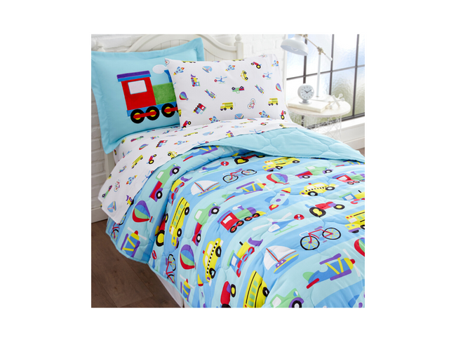Made from extra soft microfiber fabrics, this 7 piece set by Olive Kids includes a printed comforter, flat top sheet, fitted bottom sheet, two printed pillowcases, and two embroidered shams. Designed to fit a standard, full-size mattress.