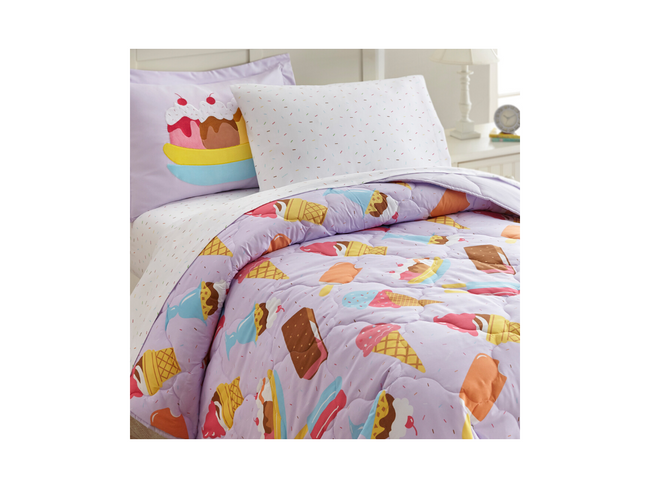Made from extra soft microfiber fabrics, this 7 piece set by Olive Kids includes a printed comforter, flat top sheet, fitted bottom sheet, two printed pillowcases, and two embroidered shams. Designed to fit a standard, full-size mattress.