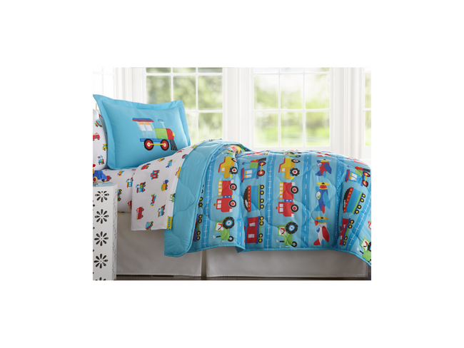 Made from extra soft microfiber fabrics, this 7 piece set by Olive Kids includes a printed comforter, flat top sheet, fitted bottom sheet, two printed pillowcases, and two embroidered shams. Designed to fit a standard, full-size mattress.