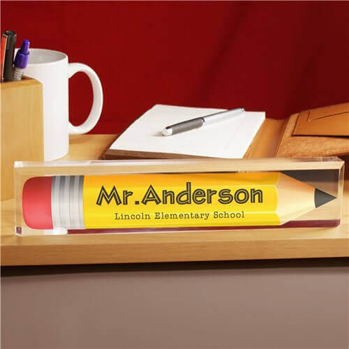 Start the school year off right with our Personalized Pencil Acrylic Name Plate makes a perfect gift for your teacher. Personalized this nameplate with any name and any custom message of your choice. A wonderful thank you gift for your favorite classroom teacher.